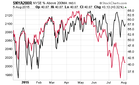 the percentage of NYSE stocks trading above their 200-day moving average